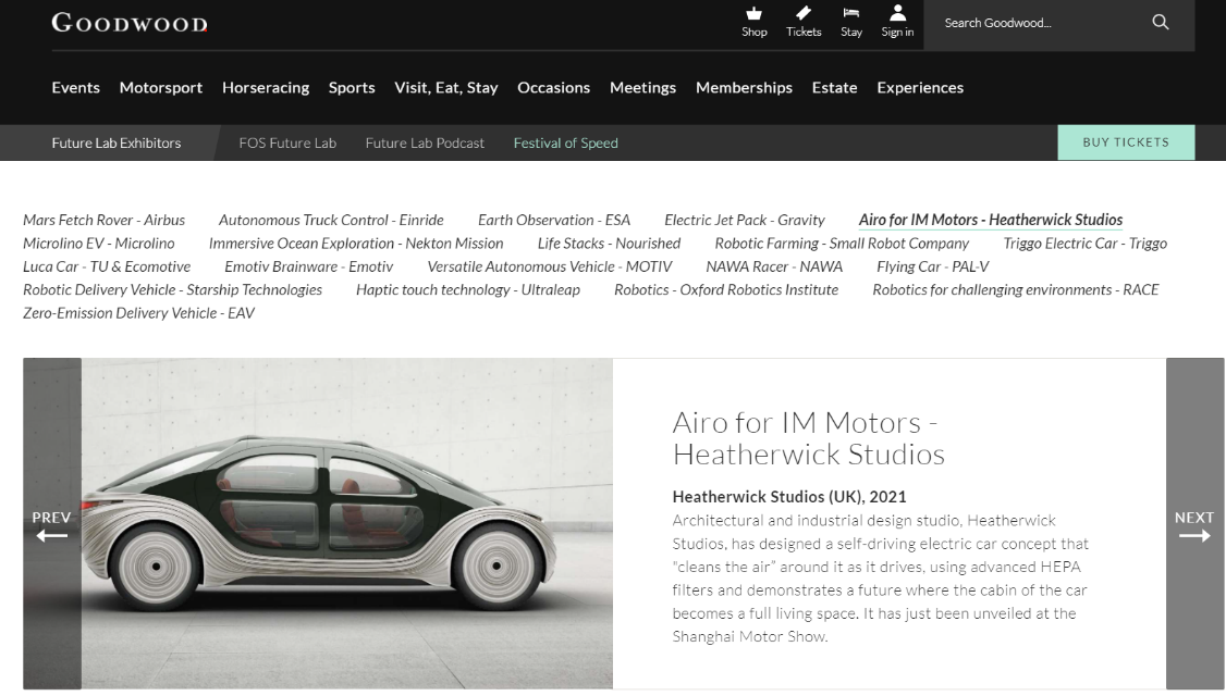 (2021年7月2日,上海)日前,Goodwood Festival of Speed(古德伍德速度节,后简称Goodwood FOS)的官方网站上,由智己汽车与世界著名设计工作室Heatherwick Studio联合打造的全新概念车型AIRO受邀参展的讯息曝光。AIRO在今年上海车展上首秀即大放异彩,今年7月8日-11日,AIRO将在Goodwood